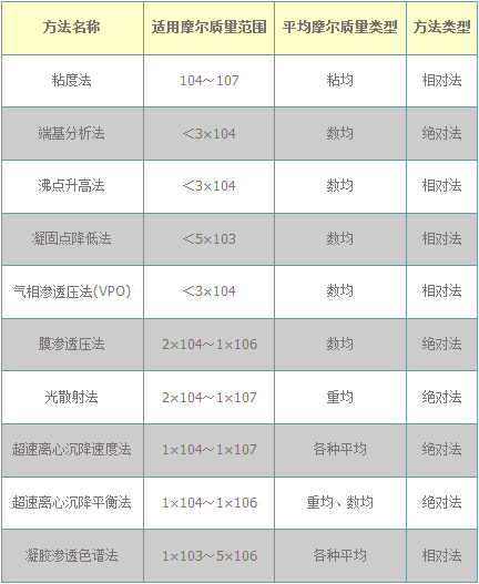 測量聚合物分子量的方法與適用分子量范圍