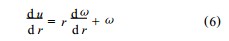 內(nèi)外筒之間的流體因黏性作用在內(nèi)筒帶動(dòng)下層旋轉(zhuǎn) ,各流層質(zhì)點(diǎn)的角速度不同. 設(shè)距旋轉(zhuǎn)軸 r處 ,流體質(zhì)點(diǎn)的角速度為ω( r) ,線速度 u = rω,則