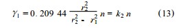 式中 , k1 為儀器常數(shù). 對(duì)于指定的測(cè)量系統(tǒng) ,內(nèi)筒轉(zhuǎn)速一定時(shí) , k1 為常數(shù)將τ=ηγ以及式 (11) 代入旋轉(zhuǎn)力矩平衡方程式(1) ,整理得內(nèi)筒壁切變速率與轉(zhuǎn)速的關(guān)系 :